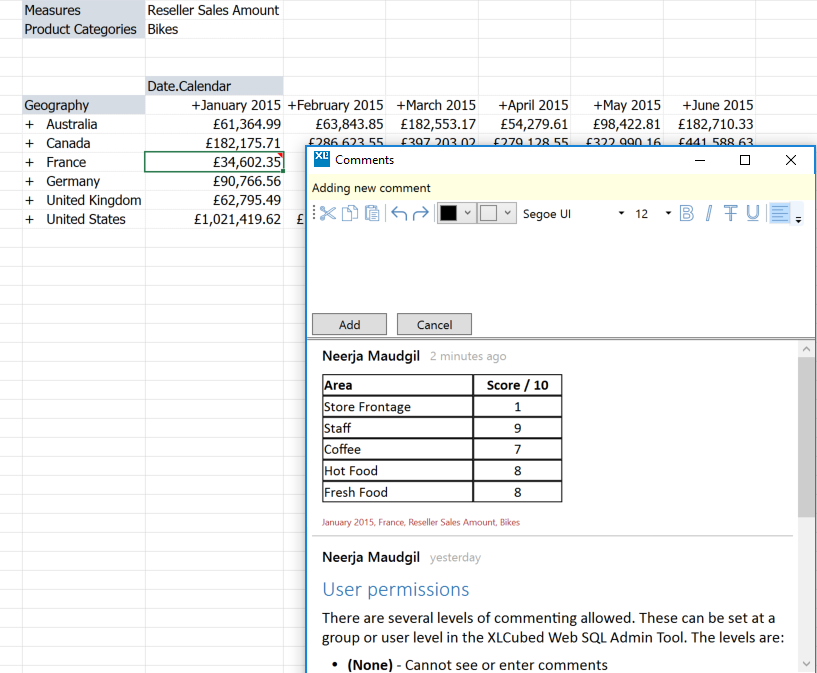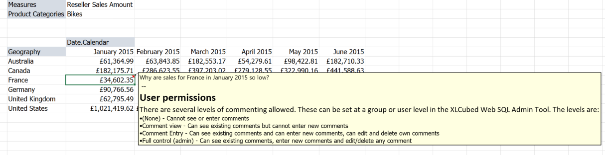 Remember, XLCubed commentary is fully-governed with strict control over who can add and who can view comments.