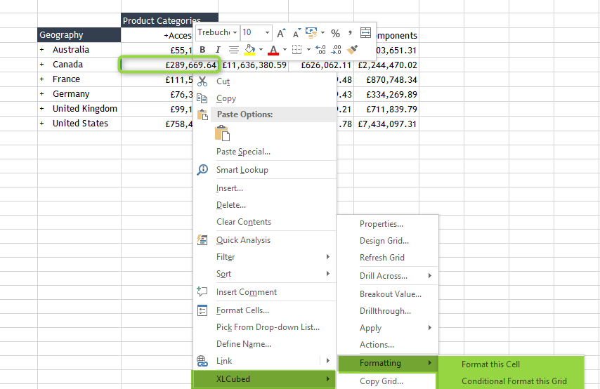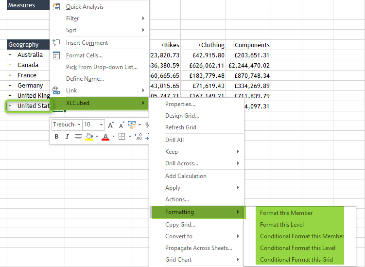 Most formatting in XLCubed can be handled though the formatting options available on the right-click menu, and today’s blog will cover some of the common use cases.