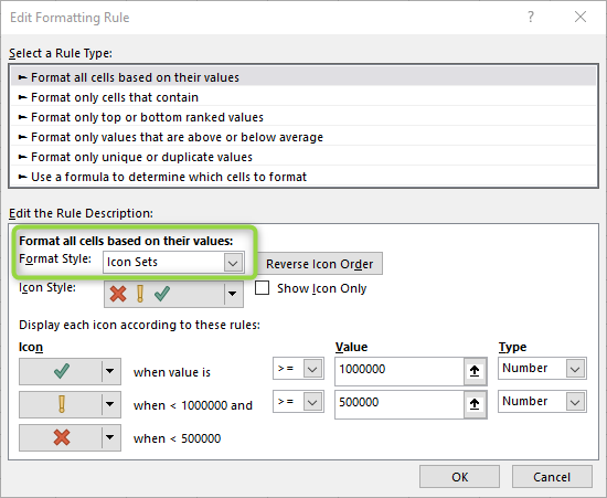 I’ve set up a conditional format on this grid using icon sets:
