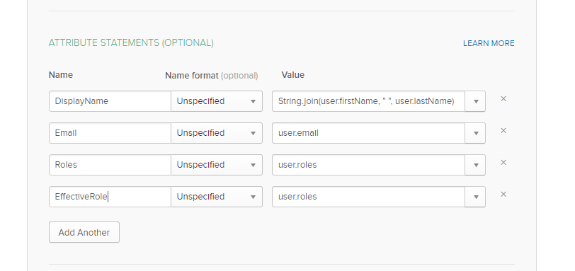 Now we can define the roles in Okta this is done by adding a new attribute to the standard “Okta” user profile and then adding some attributes to the SAML response.