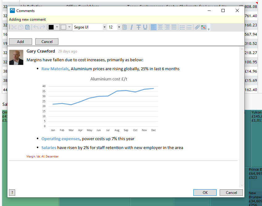 Data-Connected Commentary with XLCubed