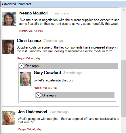 Anyone can use commentary to provide a general analysis of the report content for the current period. It creates a space for users to raise questions in context and receive in-thread replies.