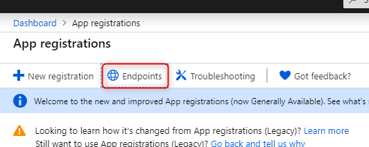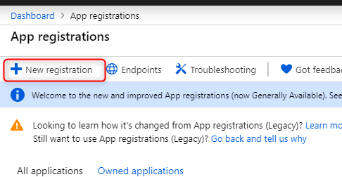 The first step is to register a new Application in your Azure portal – search for “App registrations”: