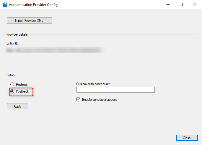 Download and save the XML from that link and use the XLCubedWeb Config Application authentication settings as “Custom Provider” and import the XML, ensuring that “Postback” is selected: