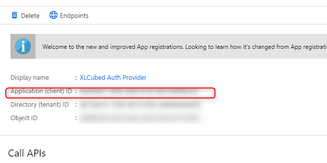 The next step is to give XLCubed the information it needs to use the application registration you’ve just created. To do that you need the “Application (client) ID” from the Application settings: