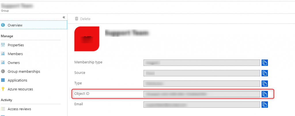 Now you just need to create the link between the Azure Groups and the XLCubed roles. To do this find the group in the Azure Active Directory and copy the “Object ID”:
