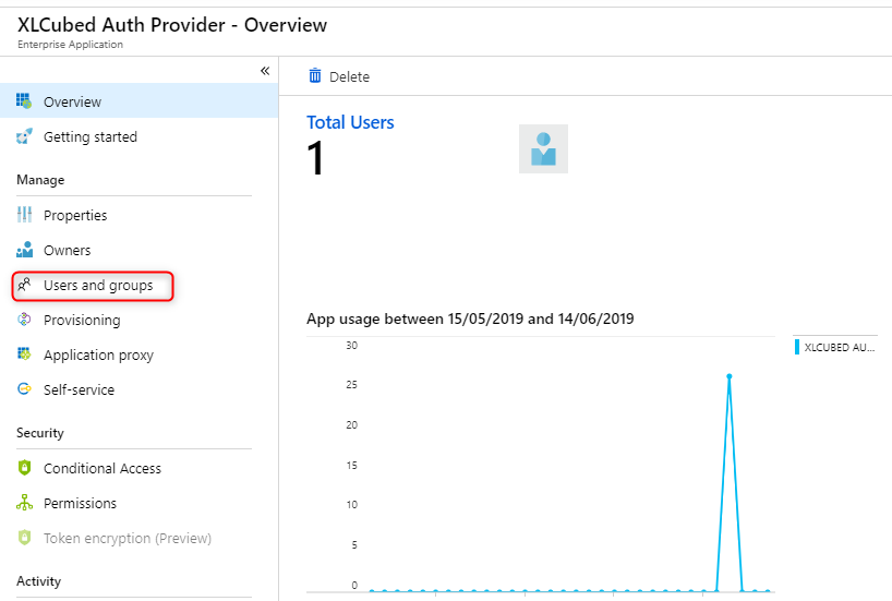 This takes you to an overview of the usage and also gives the option to manage the users for the app: