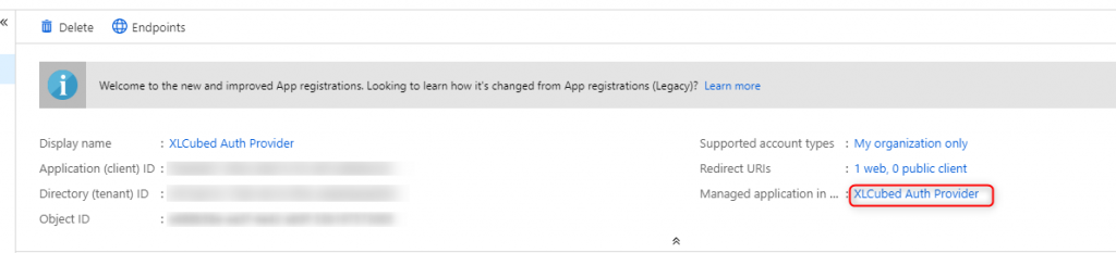 To do this go to the App Registration settings and click on the “Managed application” link: