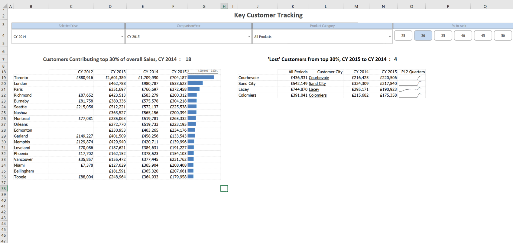 He had been asked to provide a report analysing their customer base by % contribution to company revenue. But that wasn’t all! He also had to produce an additional report that tracked the customers ‘lost’ by the company Year on Year by looking at sales activity.