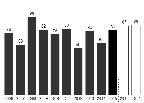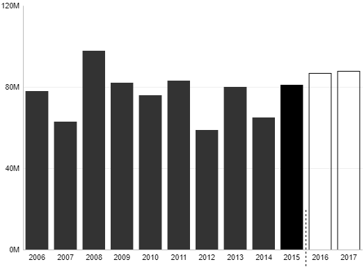 The second chart is much clearer and easier to read, but what has actually changed? The column colours are better, and the legend has been moved to the bottom, but aside from that it’s a case of taking things away – less is often more.