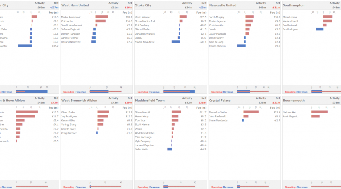 There are lots of ways to analyse spending, and rather than write a detailed analysis or opinion piece (as I’d doubtless end up being biased), I’ve taken the opportunity to simply present the transfer activity in a few different visualisations and readers can draw their own conclusions. Continue reading “Charting the Premier League Transfer Window”