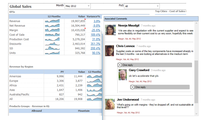 However, in a dynamic BI environment it can be limiting. For example, say I add an Excel comment to cell $C$10, then the comment is tied to that specific cell. If a user changes a filter selection, the numbers change but the comment does not and may not now be relevant.